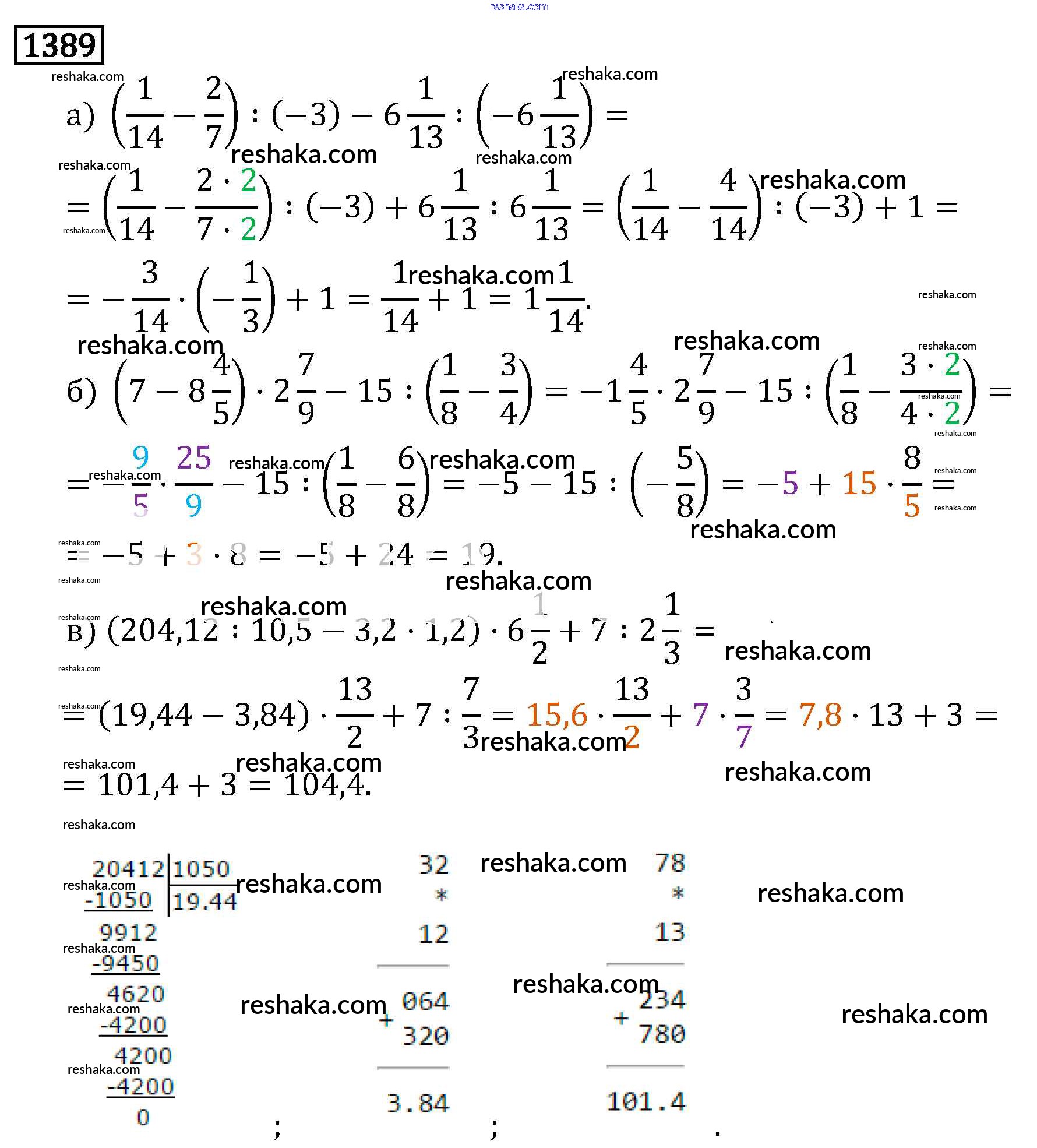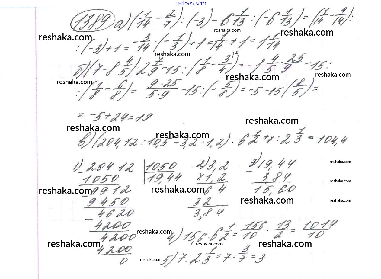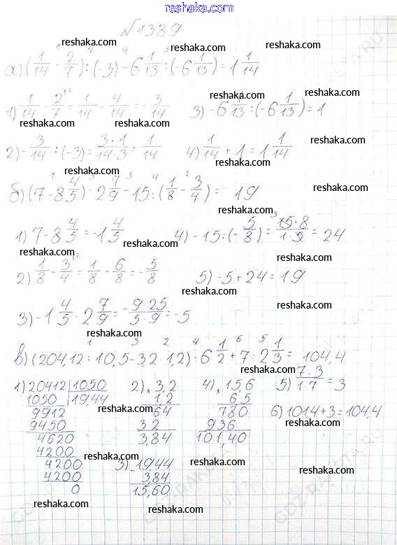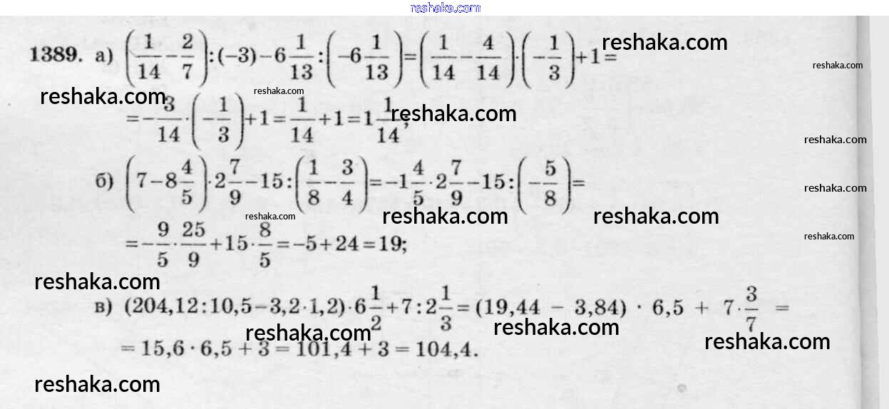 Решака - онлайн ответы Математика Виленкин, Жохов за 6 класс Учебник ФГОС 2014 - 1389