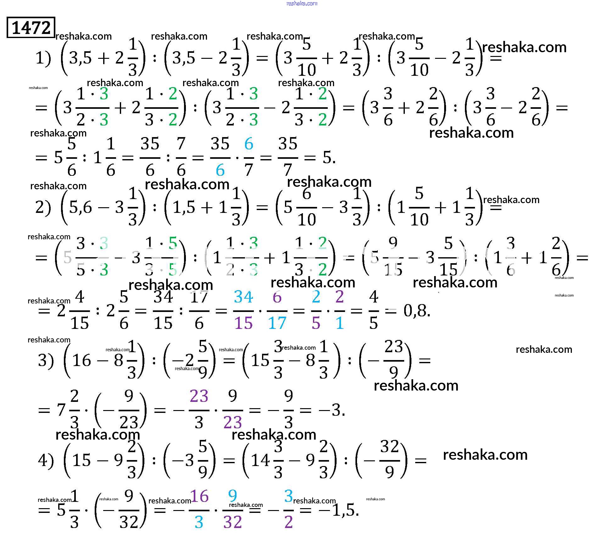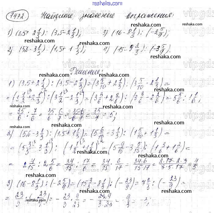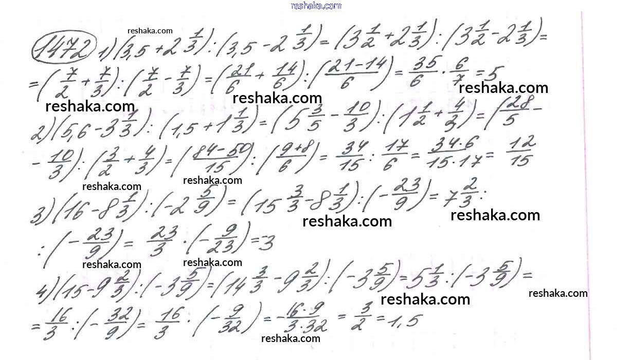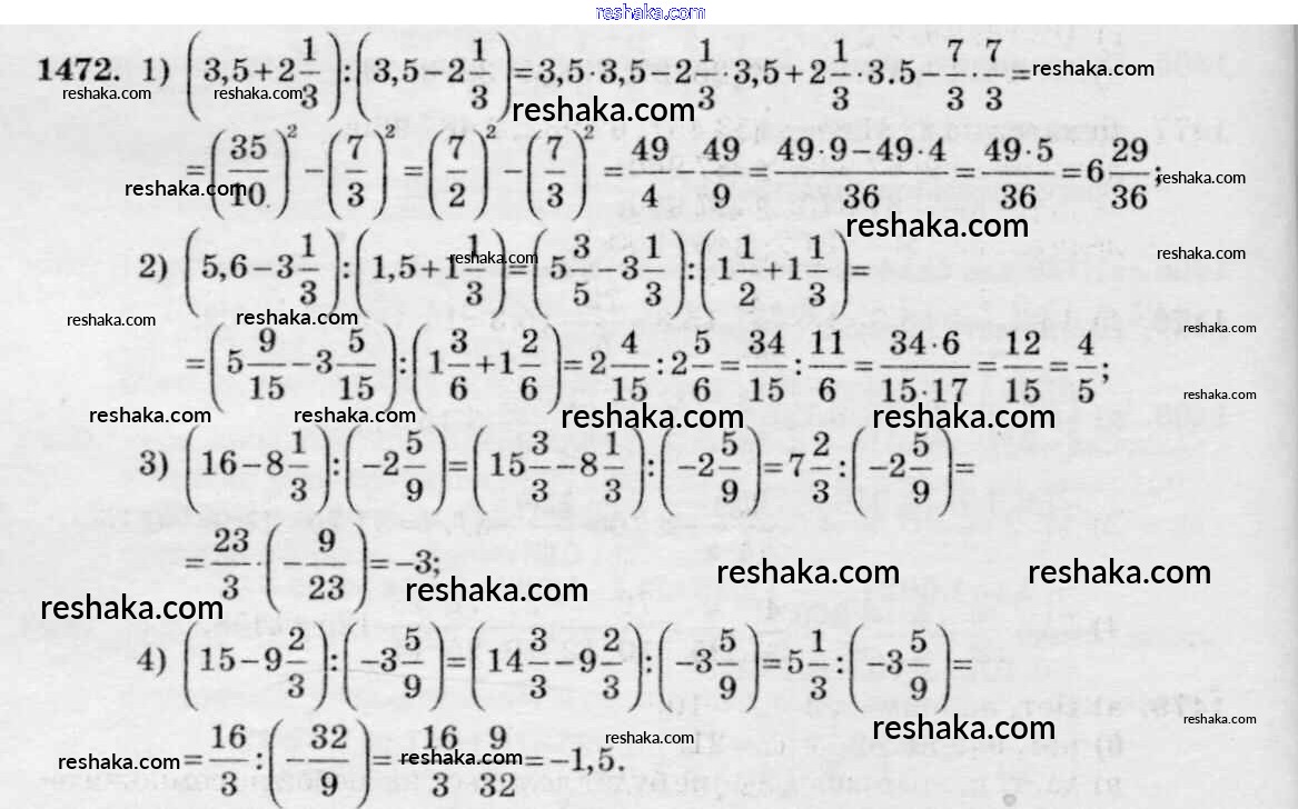 Решака - онлайн ответы Математика Виленкин, Жохов за 6 класс Учебник ФГОС 2014 - 1472