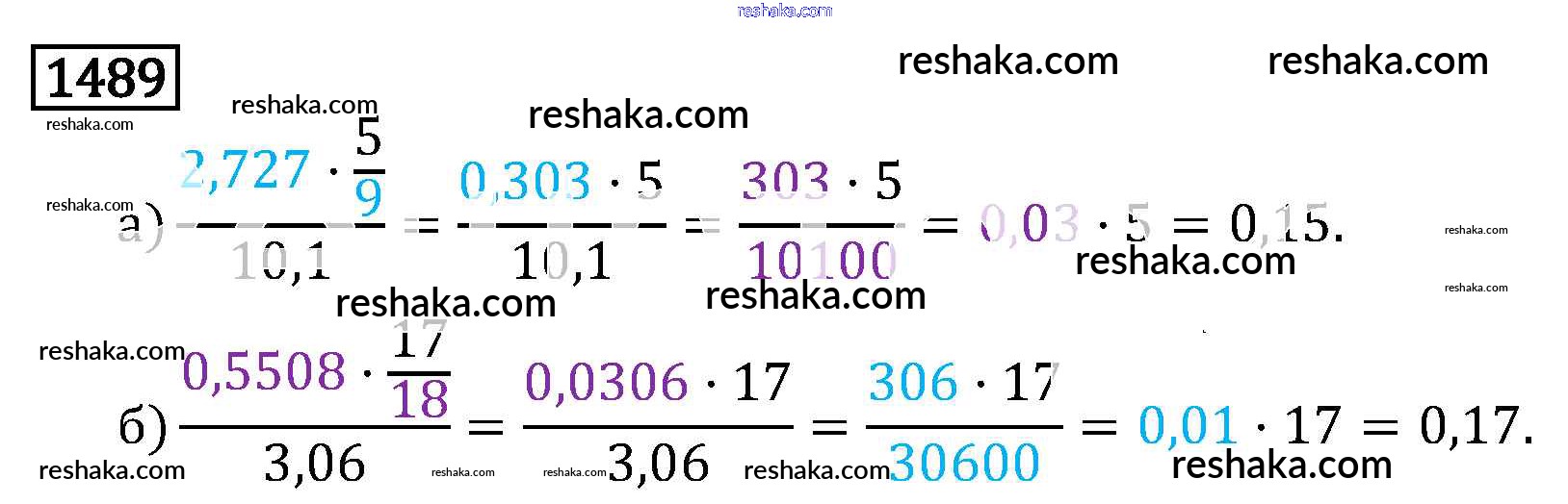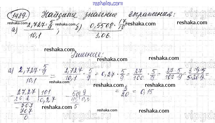 Решака - онлайн ответы Математика Виленкин, Жохов за 6 класс Учебник ФГОС 2014 - 1489