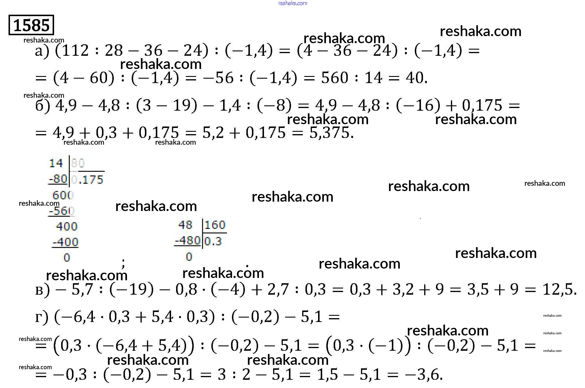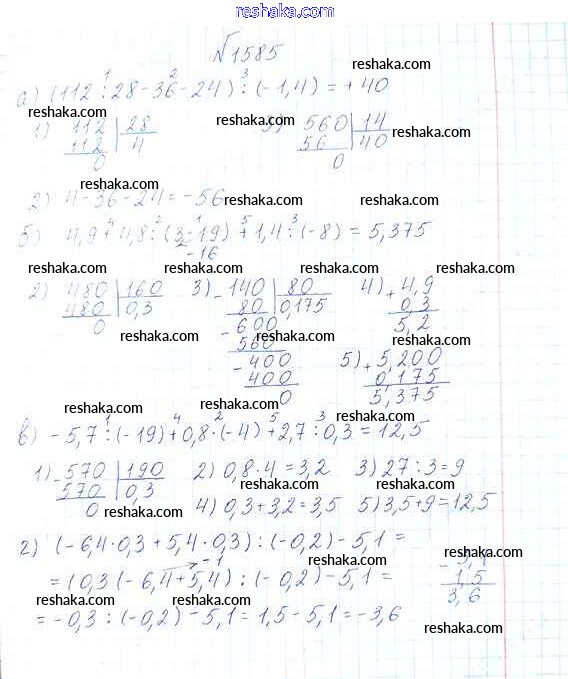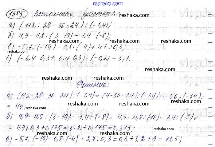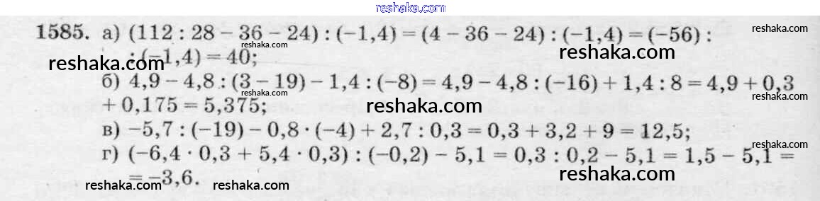 Решака - онлайн ответы Математика Виленкин, Жохов за 6 класс Учебник ФГОС 2014 - 1585