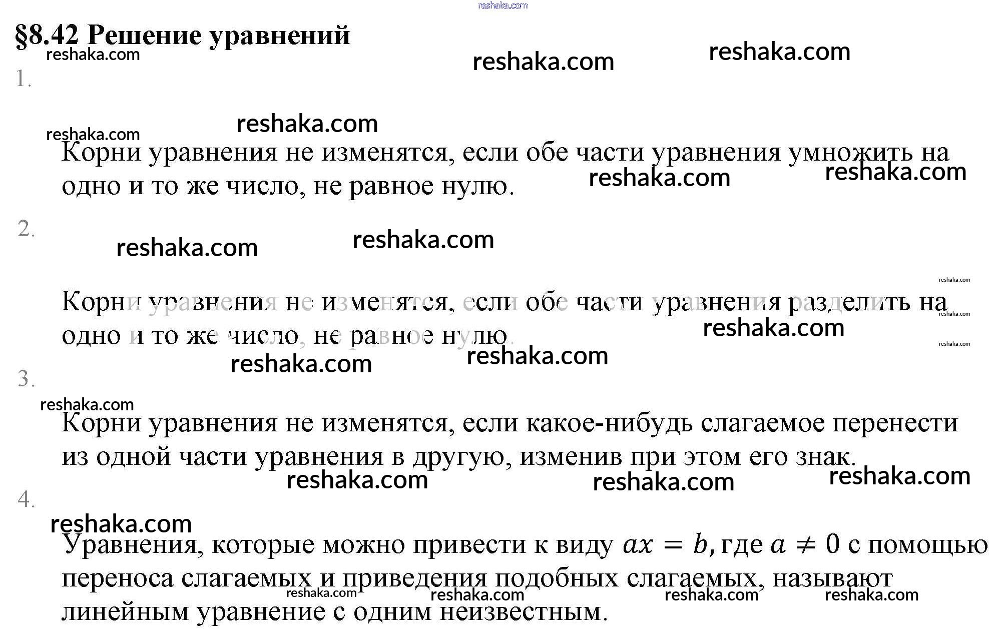 Представляем вам сборники по Математике, с готовыми ответами к Учебнику Виленкин школьной программы для учеников шестой класса. Это не просто гдз с ответом, а с подсказками, как верно решить Вопросы к параграфу §8. Решение уравнений 8.42. Проверяй домашку с умом и получай высший балл!