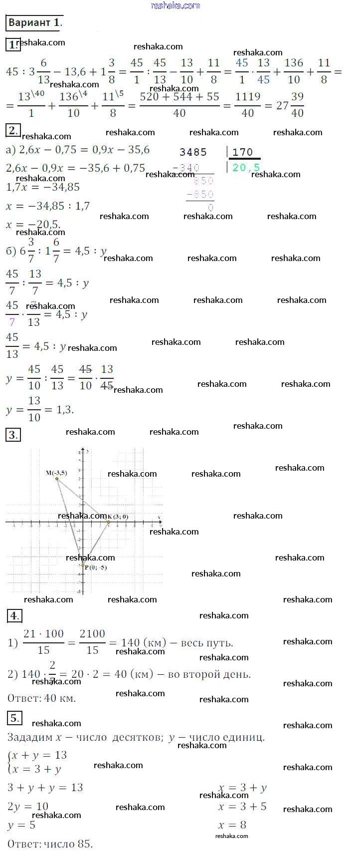 Решака - онлайн ответы Математика Жохов, Крайнева за 6 класс Контрольные работы ФГОС 2011 - 1