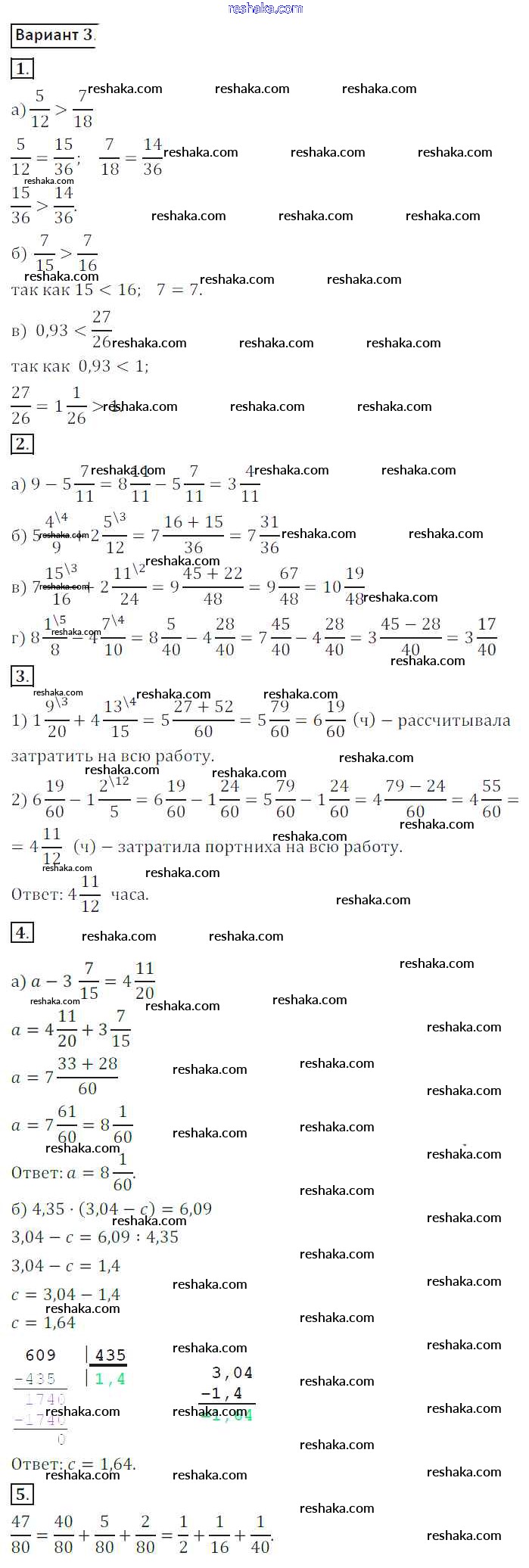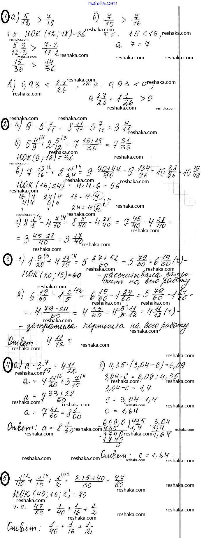 Решака - онлайн ответы Математика Жохов, Крайнева за 6 класс Контрольные работы ФГОС 2011 - 3