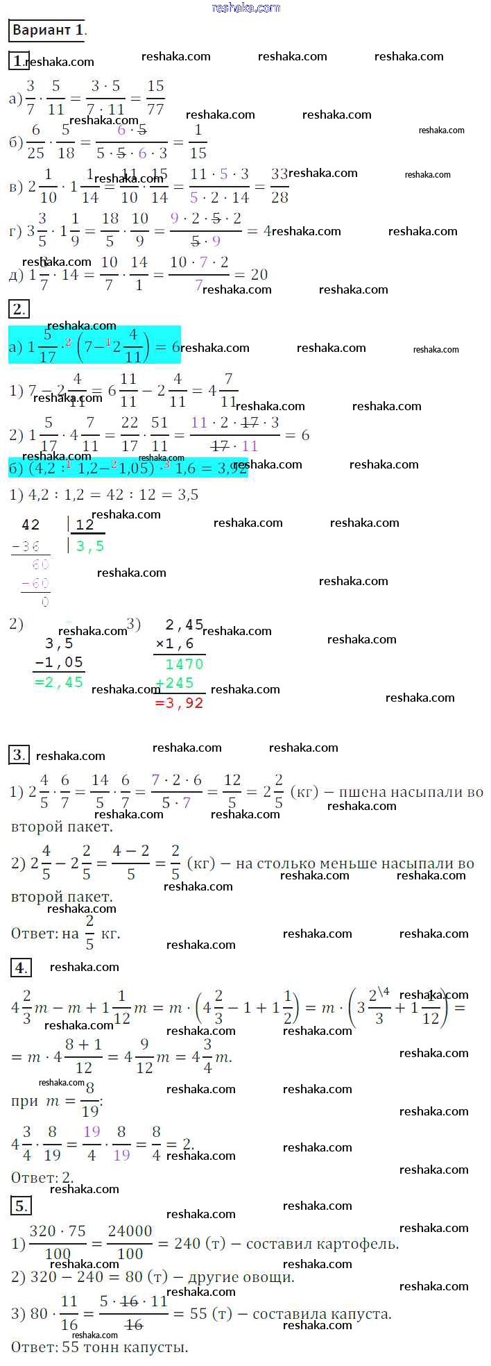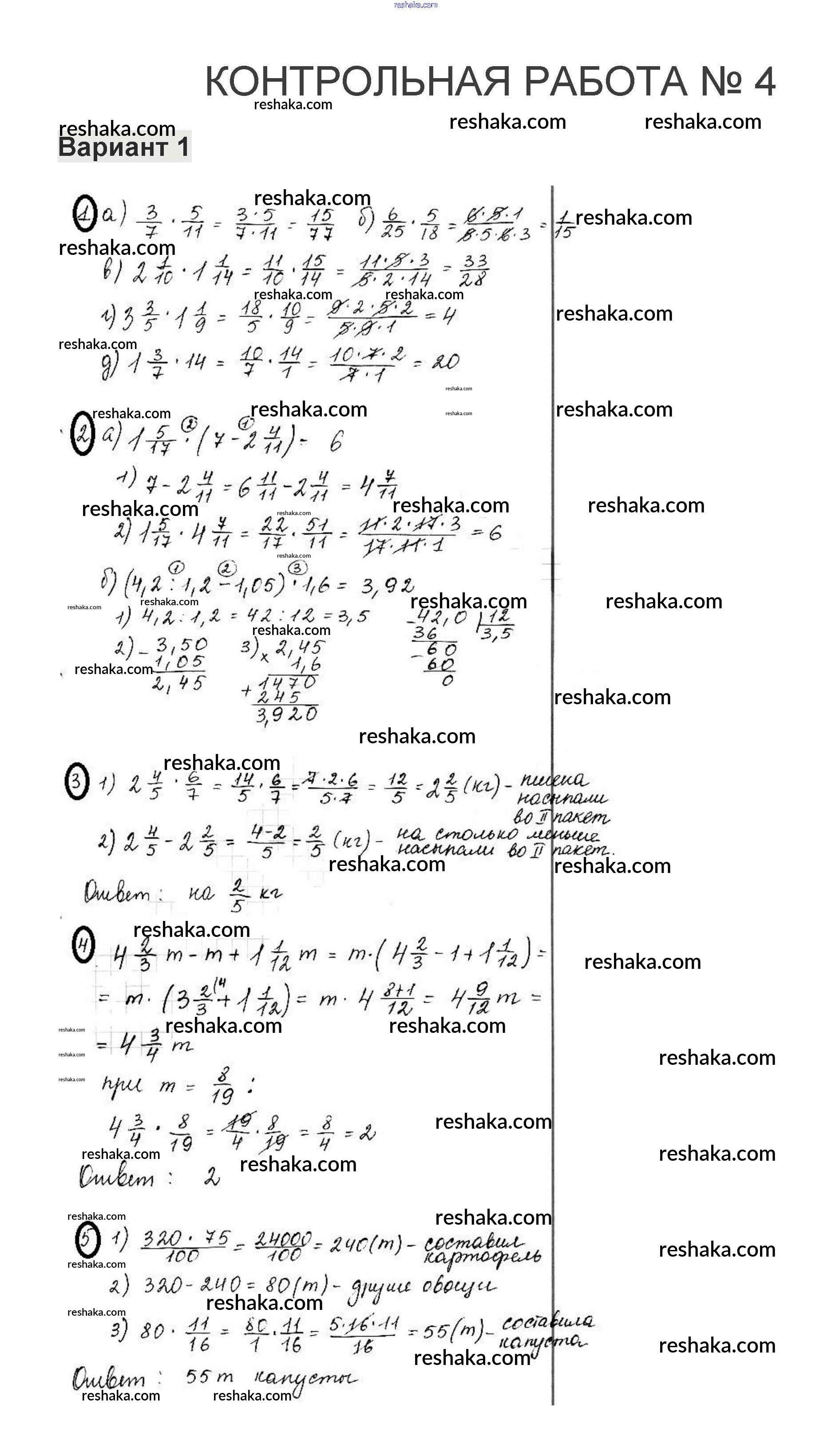 Решака - онлайн ответы Математика Жохов, Крайнева за 6 класс Контрольные работы ФГОС 2011 - 1