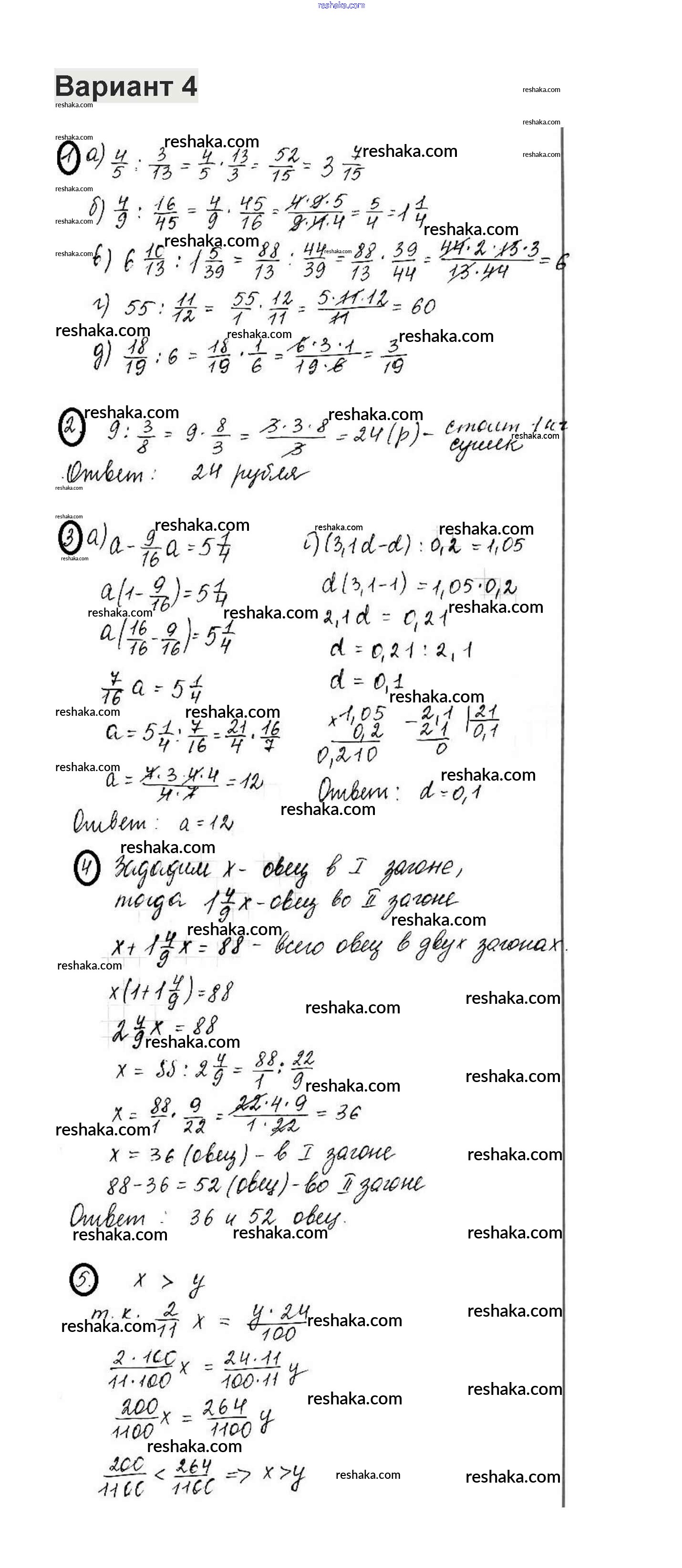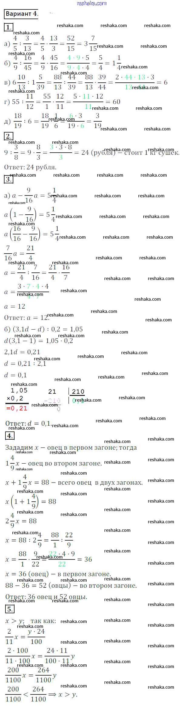 Решака - онлайн ответы Математика Жохов, Крайнева за 6 класс Контрольные работы ФГОС 2011 - 4