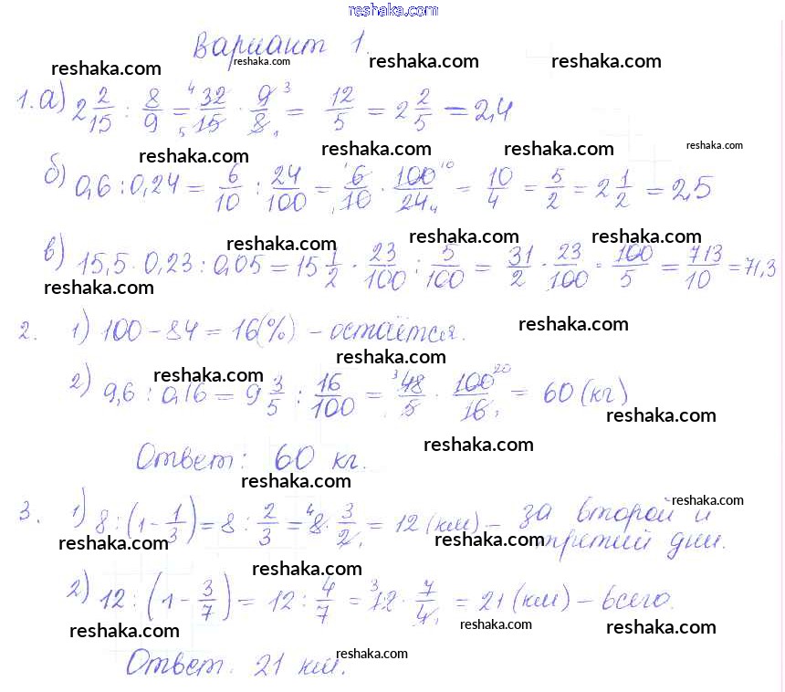 Решака - онлайн ответы Математика Журавлев, Изотова за 6 класс Контрольные и самостоятельные работы ФГОС 2015 - 1