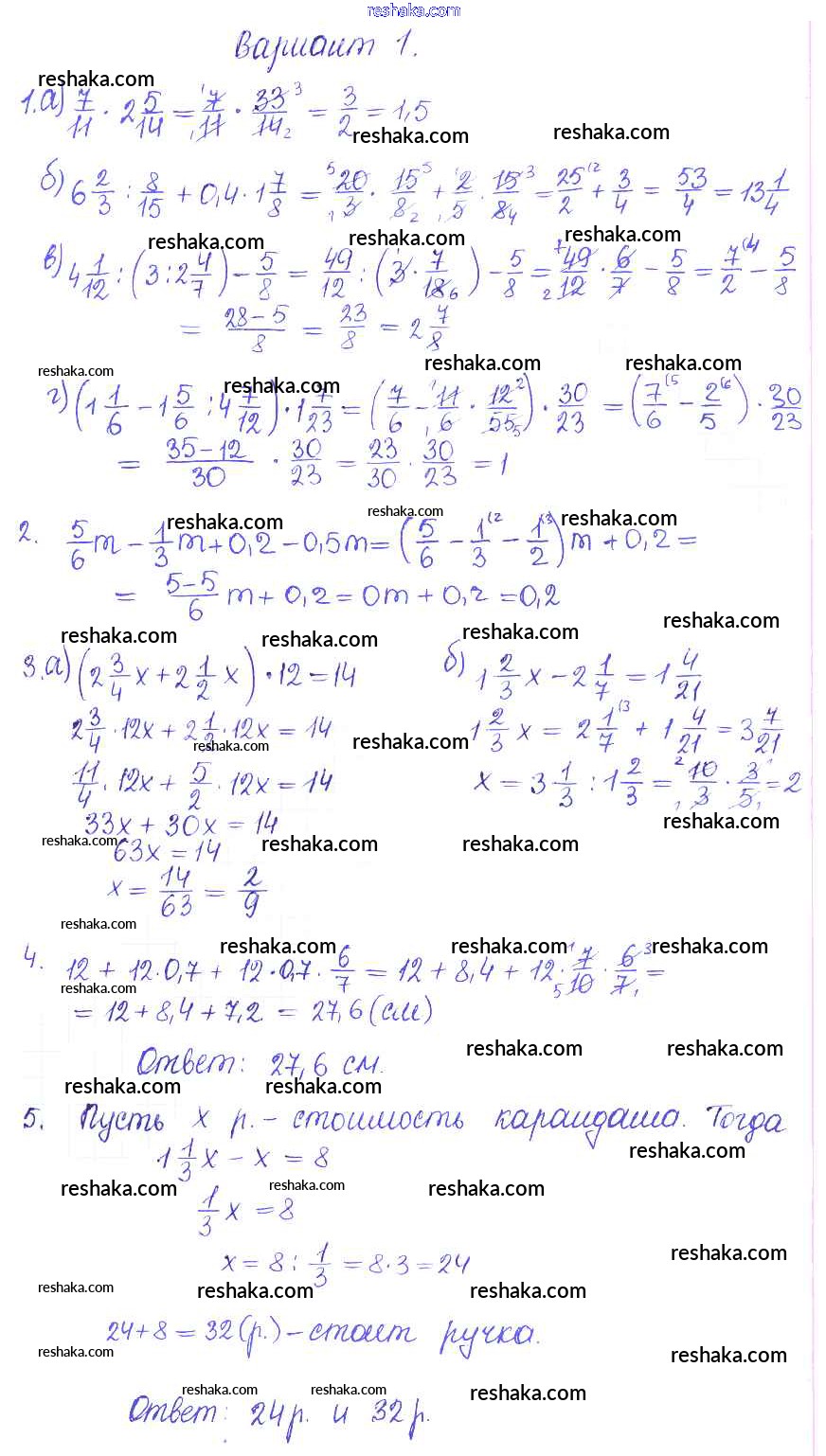 Решака - онлайн ответы Математика Журавлев, Изотова за 6 класс Контрольные и самостоятельные работы ФГОС 2015 - 1