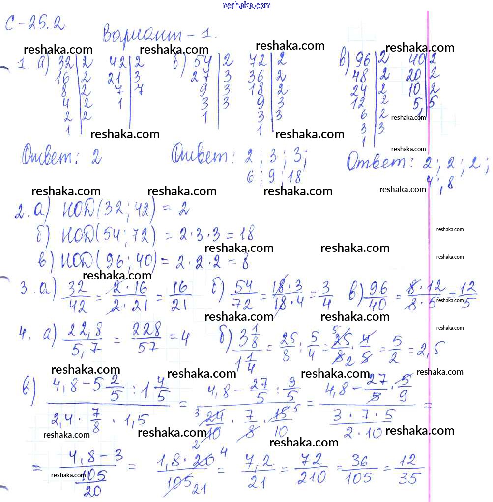 Представляем вам сборники по Математике, с готовыми ответами к Самостоятельным работам Зубарева школьной программы для учеников шестой класса. Это не просто гдз с ответом, а с подсказками, как верно решить 2. Варианты СР-25 1. Проверяй домашку с умом и получай высший балл!