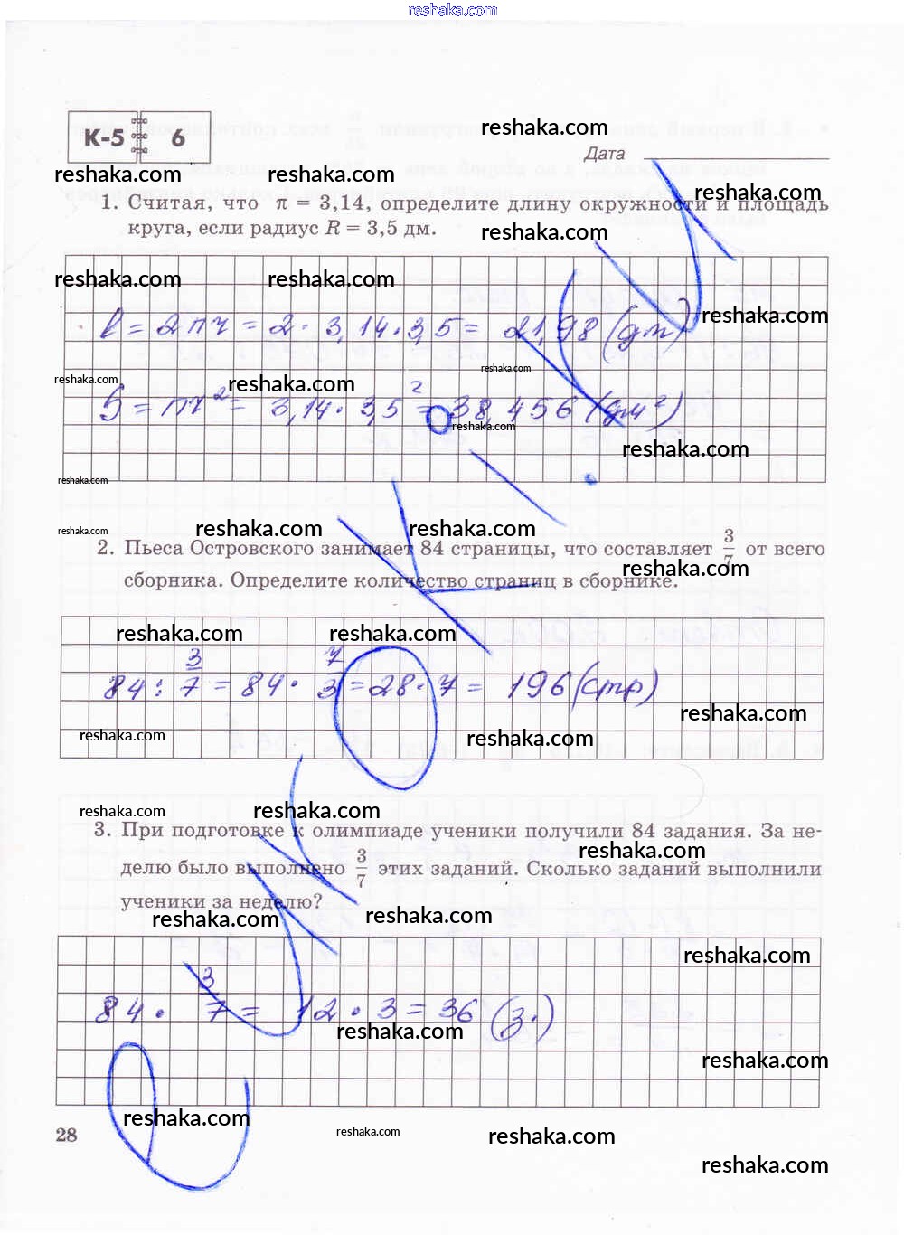 Решака - онлайн ответы Математика Зубарева, Лепешонкова за 6 класс Тетрадь для контрольных работ ФГОС 2020 - 28