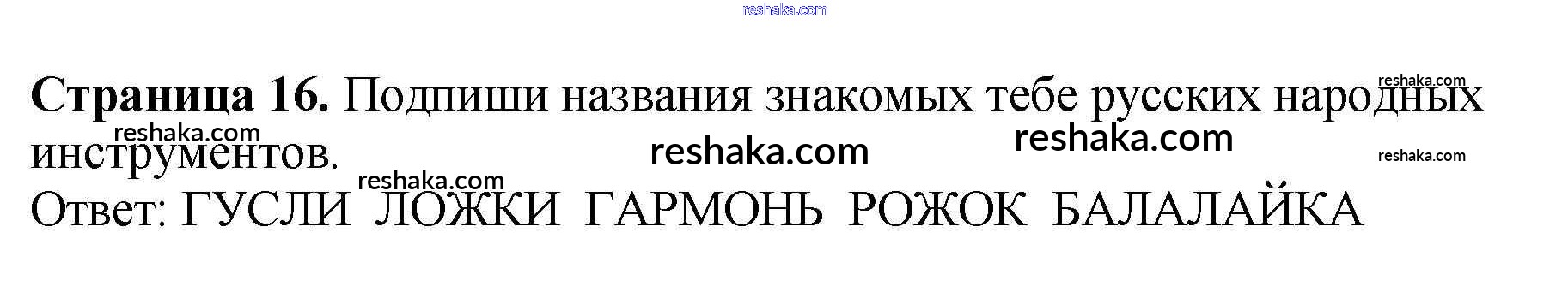 Представляем вам сборники по Музыке, с готовыми ответами к Рабочей тетради Критская школьной программы для учеников первый класса. Это не просто гдз с ответом, а с подсказками, как верно решить Страницы 16. Проверяй домашку с умом и получай высший балл!