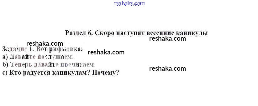 Представляем вам сборники по Немецкому языку, с готовыми ответами к Учебнику Бим школьной программы для учеников третий класса. Это не просто гдз с ответом, а с подсказками, как верно решить Раздел 6. Скоро наступят весенние каникулы Глава 5. Наступила весна. И с ней замечательные праздника, не так ли 1. Проверяй домашку с умом и получай высший балл!