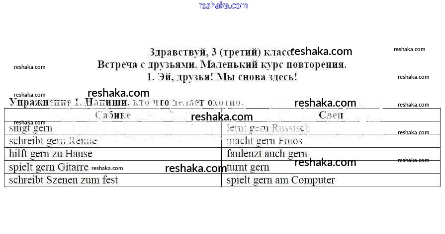 Представляем вам сборники по Немецкому языку, с готовыми ответами к Рабочей тетради Бим школьной программы для учеников третий класса. Это не просто гдз с ответом, а с подсказками, как верно решить Эй, друзья! Мы снова здесь! Здравствуй, 3 (третий) класс! Встреча с друзьями. Маленький курс повторения 1. Проверяй домашку с умом и получай высший балл!