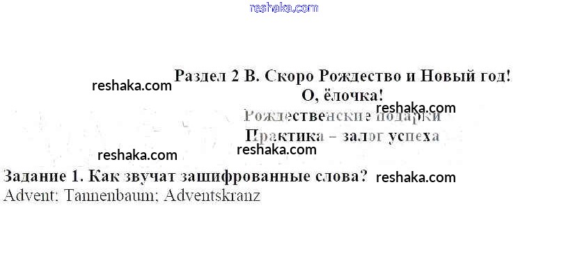 Представляем вам сборники по Немецкому языку, с готовыми ответами к Учебнику Гальскова школьной программы для учеников третий класса. Это не просто гдз с ответом, а с подсказками, как верно решить Раздел 2 В. Скоро Рождество и Новый год! Глава 2. Праздники и каникулы 1. Проверяй домашку с умом и получай высший балл!