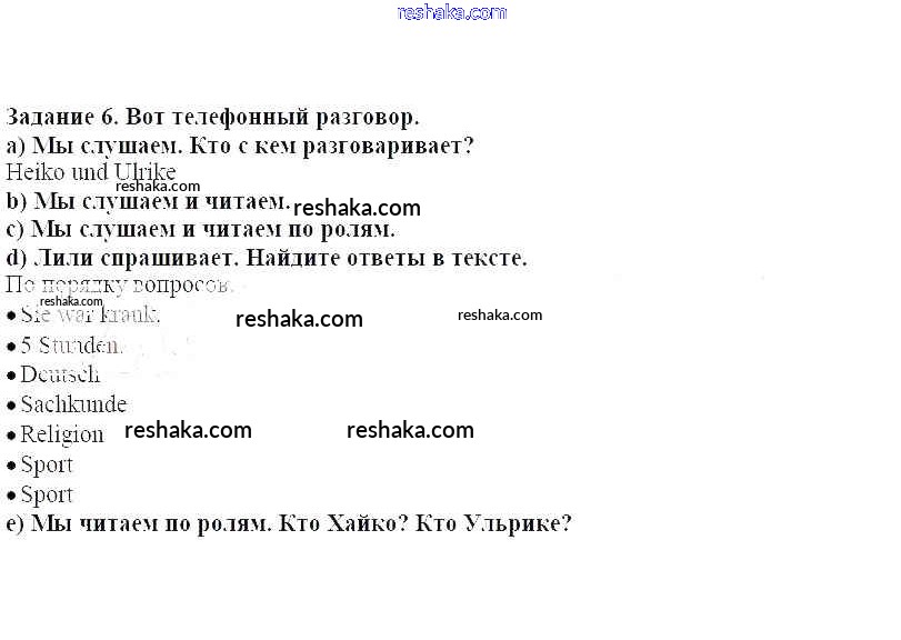 Решака - онлайн ответы Немецкий язык Бим за 4 класс Учебник ФГОС 2014 - 6
