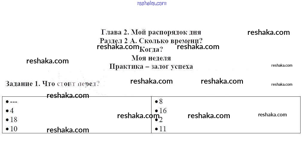 Представляем вам сборники по Немецкому языку, с готовыми ответами к Учебнику Гальскова школьной программы для учеников четвертый класса. Это не просто гдз с ответом, а с подсказками, как верно решить Раздел 2 A. Сколько времени Глава 2. Мой распорядок дня 1. Проверяй домашку с умом и получай высший балл!