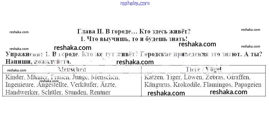 Представляем вам сборники по Немецкому языку, с готовыми ответами к Рабочей тетради Бим школьной программы для учеников пятый класса. Это не просто гдз с ответом, а с подсказками, как верно решить Что выучишь, то и будешь знать! Глава II. В городе. Кто здесь живёт 1. Проверяй домашку с умом и получай высший балл!