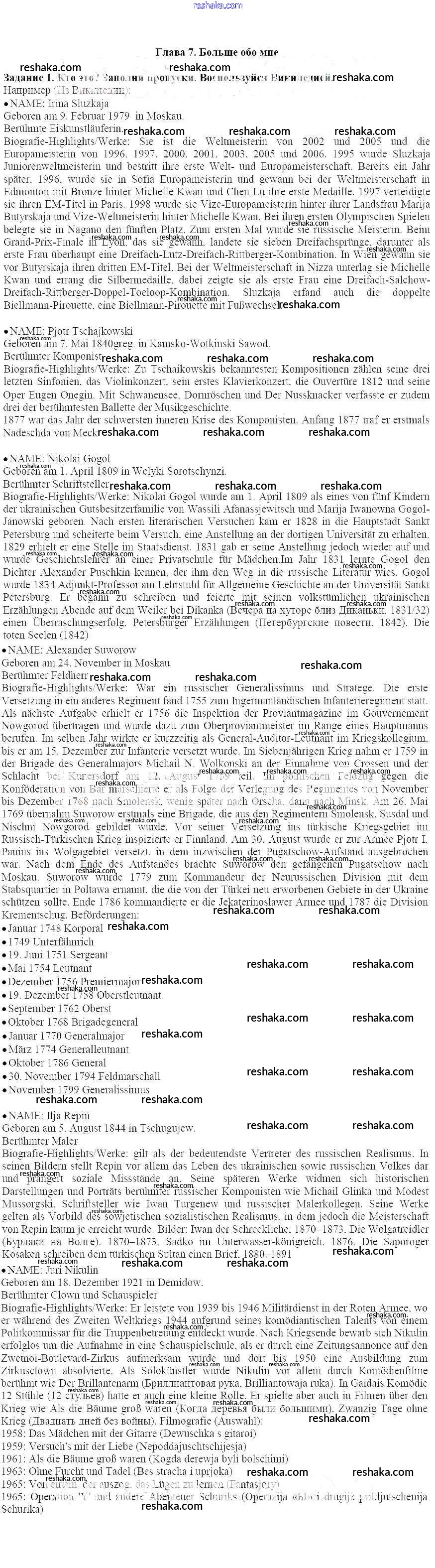 Представляем вам сборники по Немецкому языку, с готовыми ответами к Учебнику Аверин школьной программы для учеников седьмой класса. Это не просто гдз с ответом, а с подсказками, как верно решить Маленькая перемена Глава 7. Больше обо мне 1. Проверяй домашку с умом и получай высший балл!