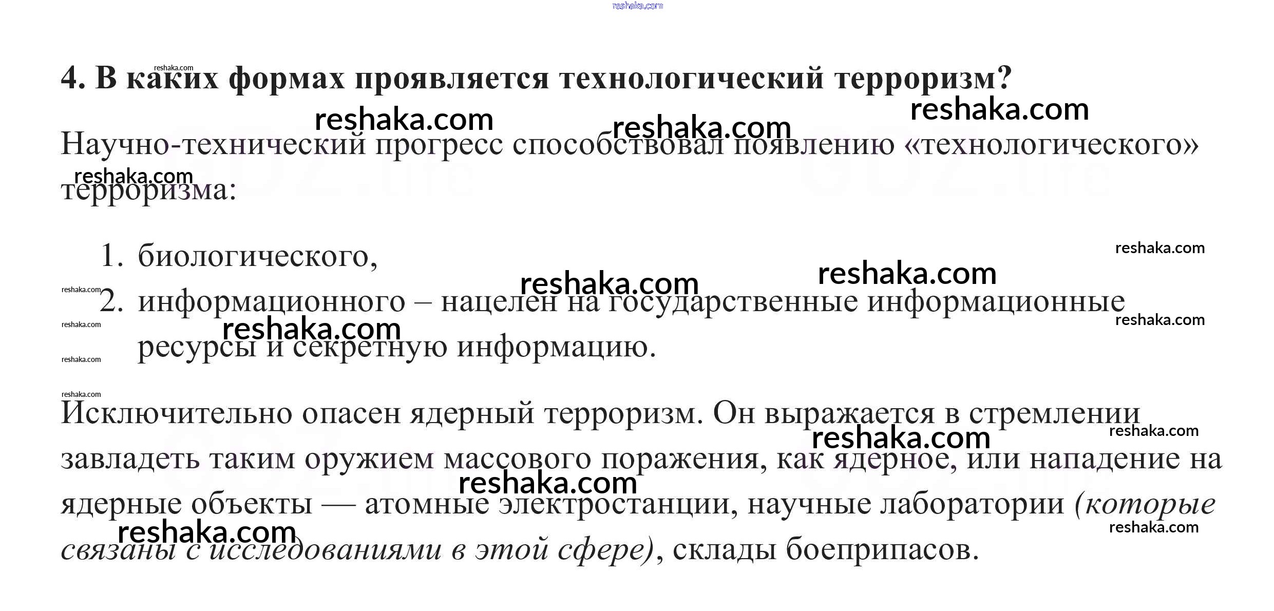 Представляем вам сборники по Обществознанию, с готовыми ответами к Учебнику Боголюбов школьной программы для учеников десятый класса. Это не просто гдз с ответом, а с подсказками, как верно решить Вопросы для самопроверки §9. Глобальная угроза международного терроризма 4. Проверяй домашку с умом и получай высший балл!