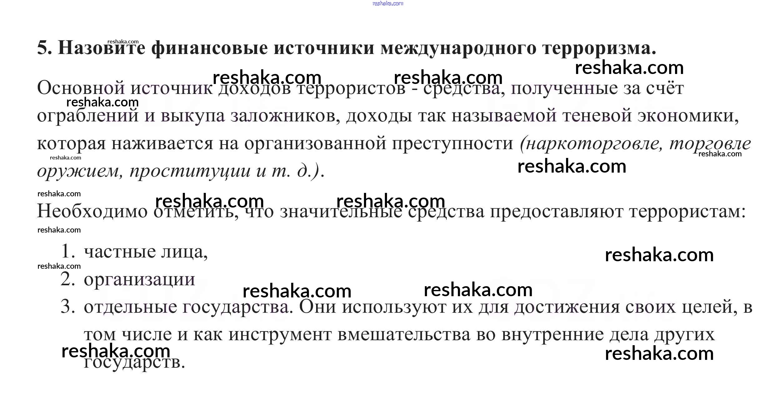 Представляем вам сборники по Обществознанию, с готовыми ответами к Учебнику Боголюбов школьной программы для учеников десятый класса. Это не просто гдз с ответом, а с подсказками, как верно решить Вопросы для самопроверки §9. Глобальная угроза международного терроризма 5. Проверяй домашку с умом и получай высший балл!