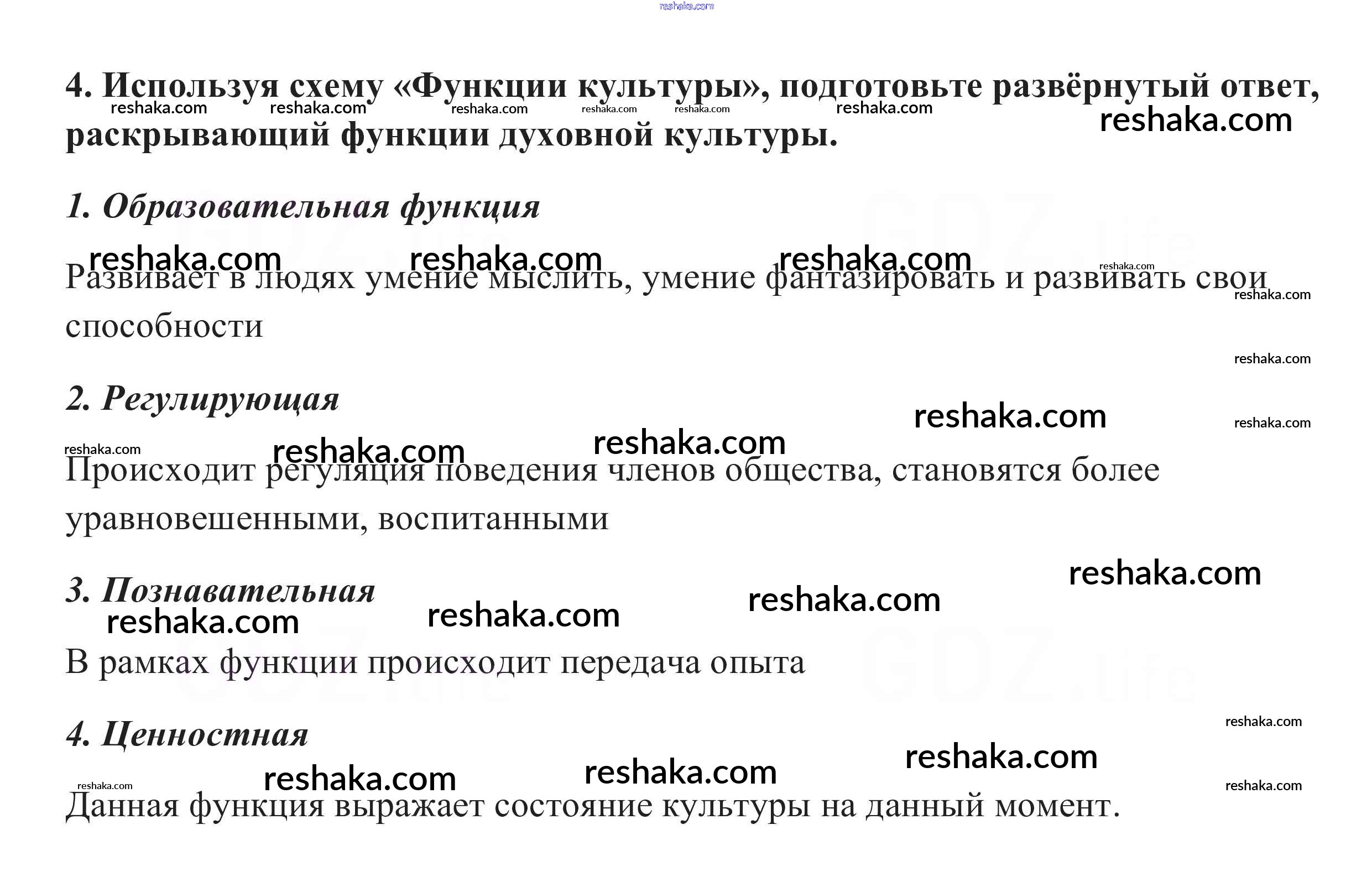 Представляем вам сборники по Обществознанию, с готовыми ответами к Учебнику Боголюбов школьной программы для учеников десятый класса. Это не просто гдз с ответом, а с подсказками, как верно решить Задания §10. Духовная культура общества 4. Проверяй домашку с умом и получай высший балл!