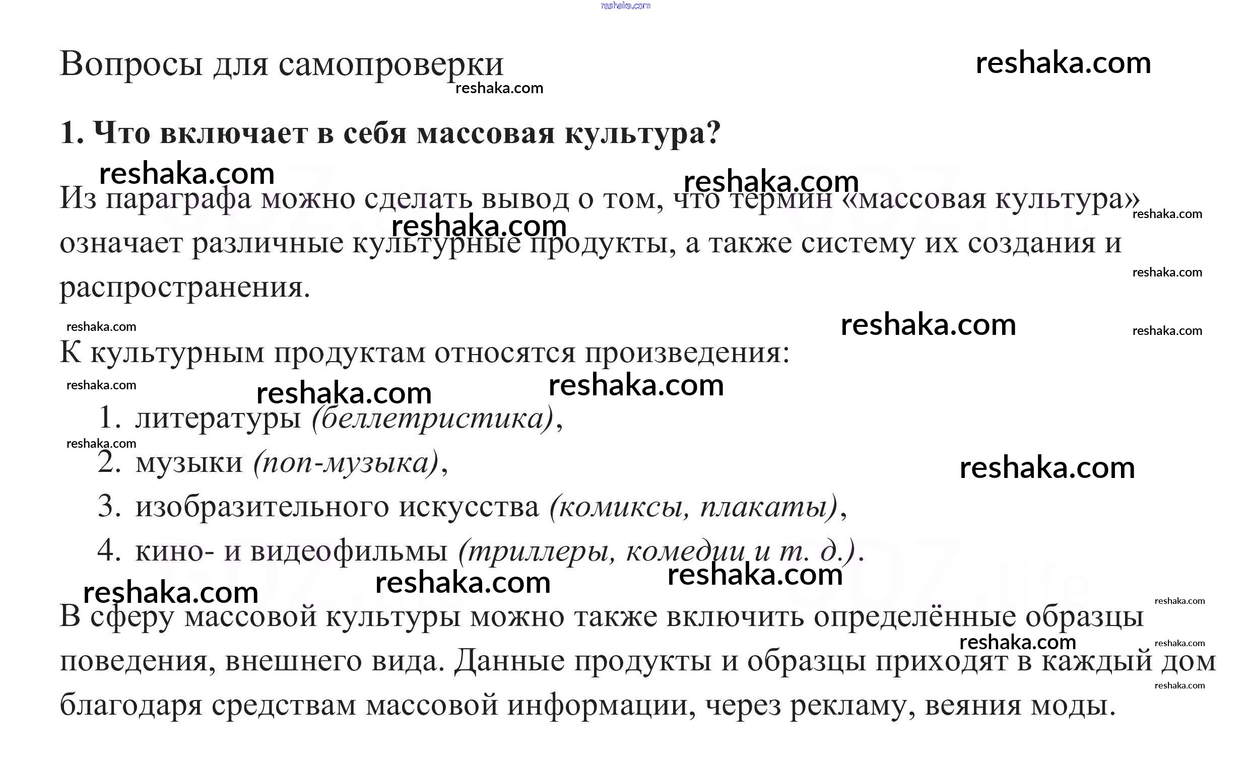 Представляем вам сборники по Обществознанию, с готовыми ответами к Учебнику Боголюбов школьной программы для учеников десятый класса. Это не просто гдз с ответом, а с подсказками, как верно решить Вопросы для самопроверки §16. Массовая культура 1. Проверяй домашку с умом и получай высший балл!