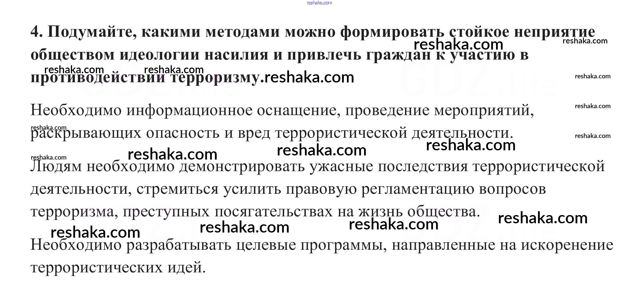 Представляем вам сборники по Обществознанию, с готовыми ответами к Учебнику Боголюбов школьной программы для учеников десятый класса. Это не просто гдз с ответом, а с подсказками, как верно решить Вопросы и задания к документу §30. Правовые основы антитеррористической политики РФ 4. Проверяй домашку с умом и получай высший балл!