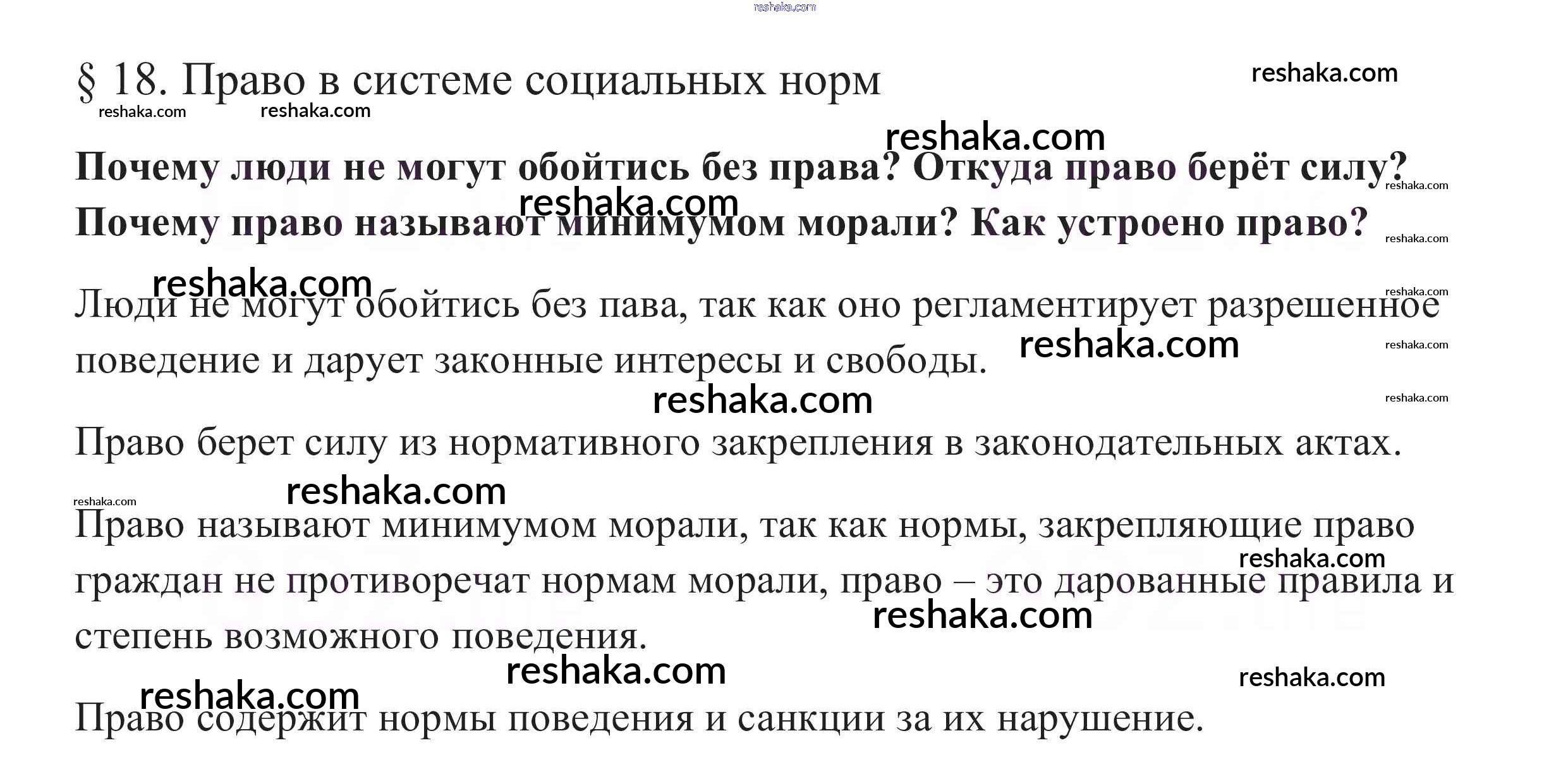 Представляем вам сборники по Обществознанию, с готовыми ответами к Учебнику Боголюбов школьной программы для учеников десятый класса. Это не просто гдз с ответом, а с подсказками, как верно решить В начале параграфа §18. Право в системе социальных норм 1. Проверяй домашку с умом и получай высший балл!