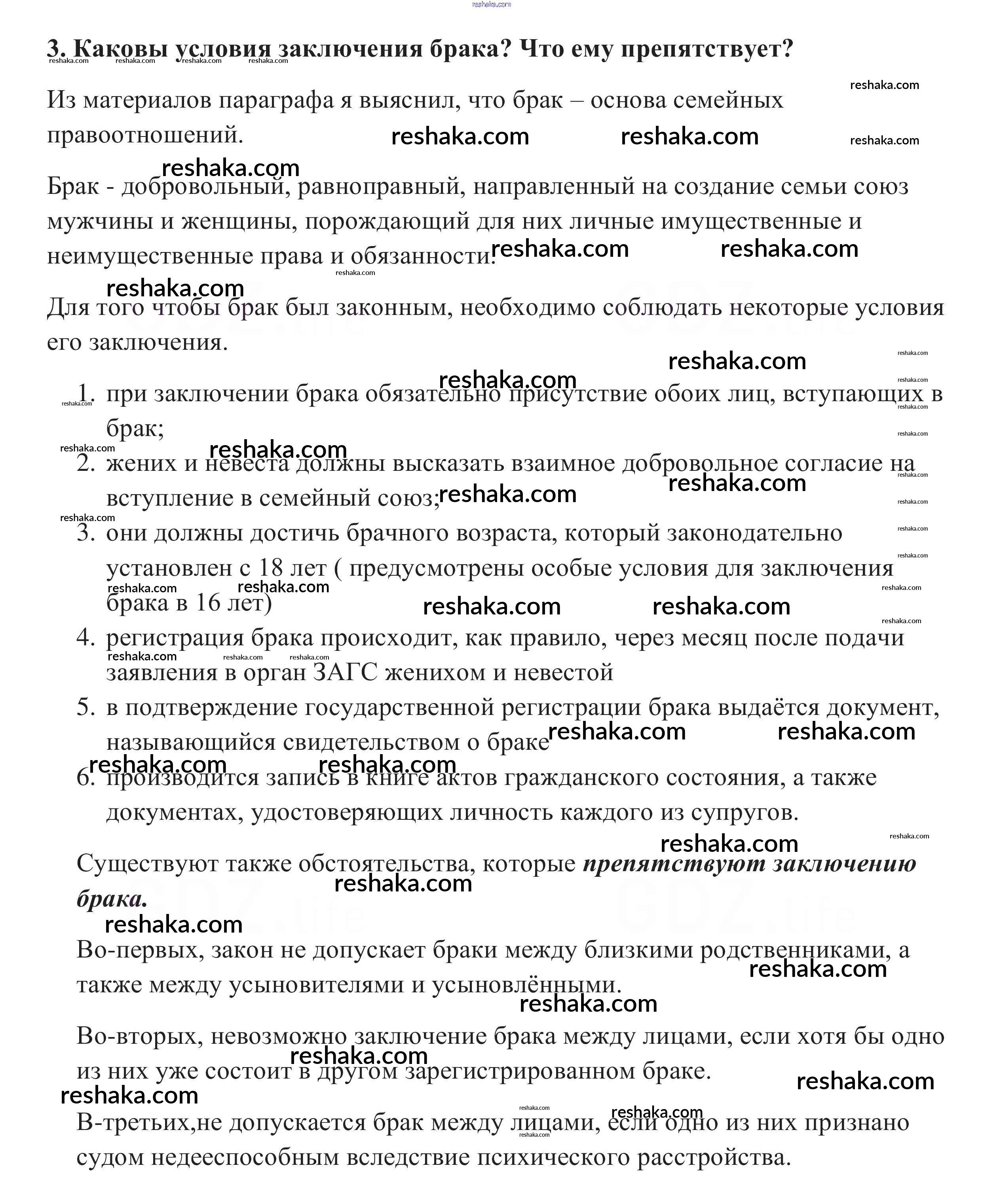 Представляем вам сборники по Обществознанию, с готовыми ответами к Учебнику Боголюбов школьной программы для учеников десятый класса. Это не просто гдз с ответом, а с подсказками, как верно решить Вопросы для самопроверки §24. Семейное право 3. Проверяй домашку с умом и получай высший балл!