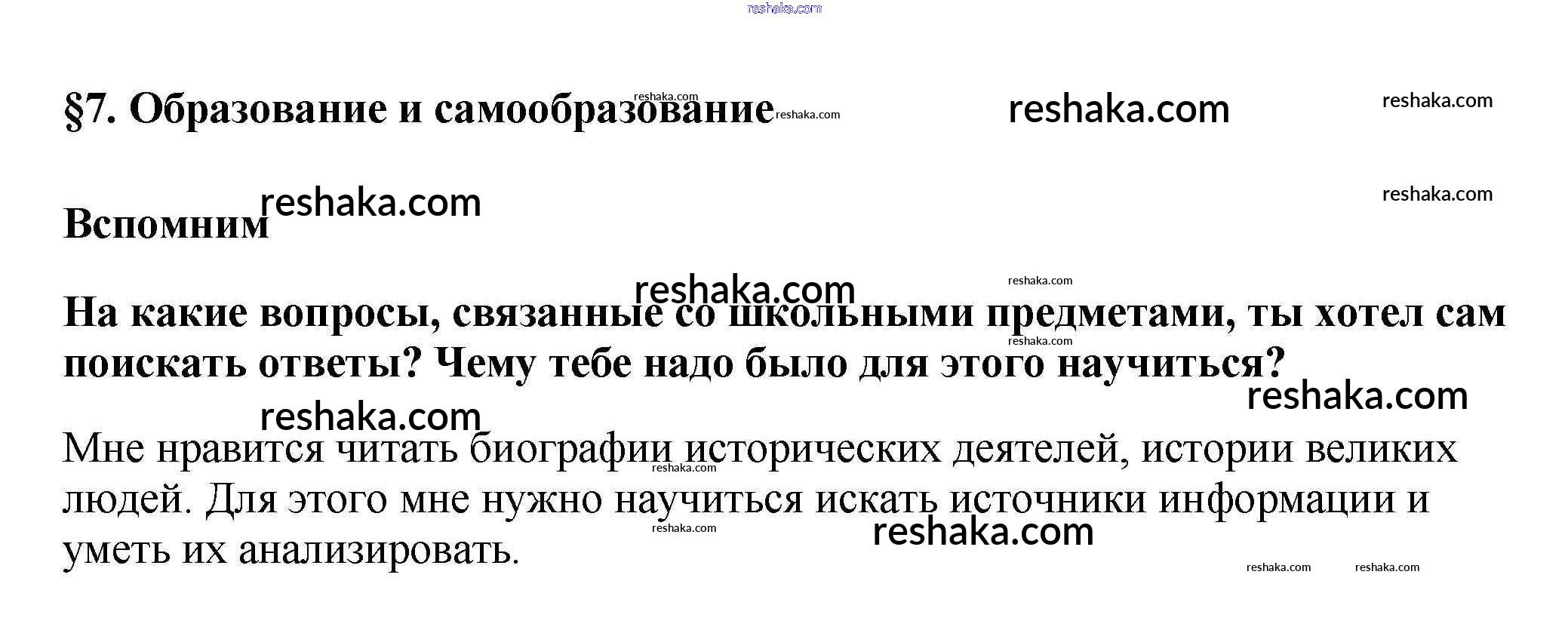 Представляем вам сборники по Обществознанию, с готовыми ответами к Учебнику Боголюбов школьной программы для учеников пятый класса. Это не просто гдз с ответом, а с подсказками, как верно решить Вспомним §7. Образование и самообразование 1. Проверяй домашку с умом и получай высший балл!
