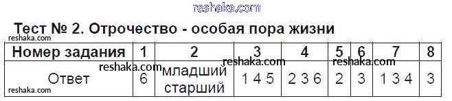 Решака - онлайн ответы Обществознание Лебедева за 5 класс Тесты ФГОС 2016 - Тест №2. Отрочество - особая пора жизни