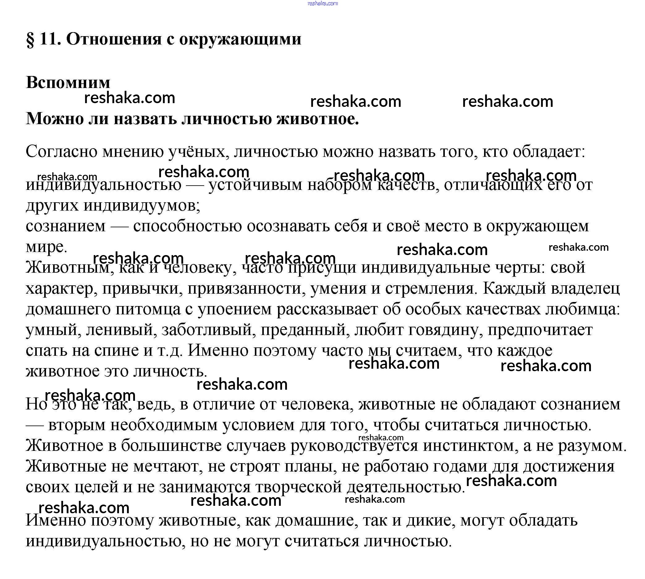 Решака - онлайн ответы Обществознание Боголюбов, Виноградова за 6 класс Учебник ФГОС 2016 - 1