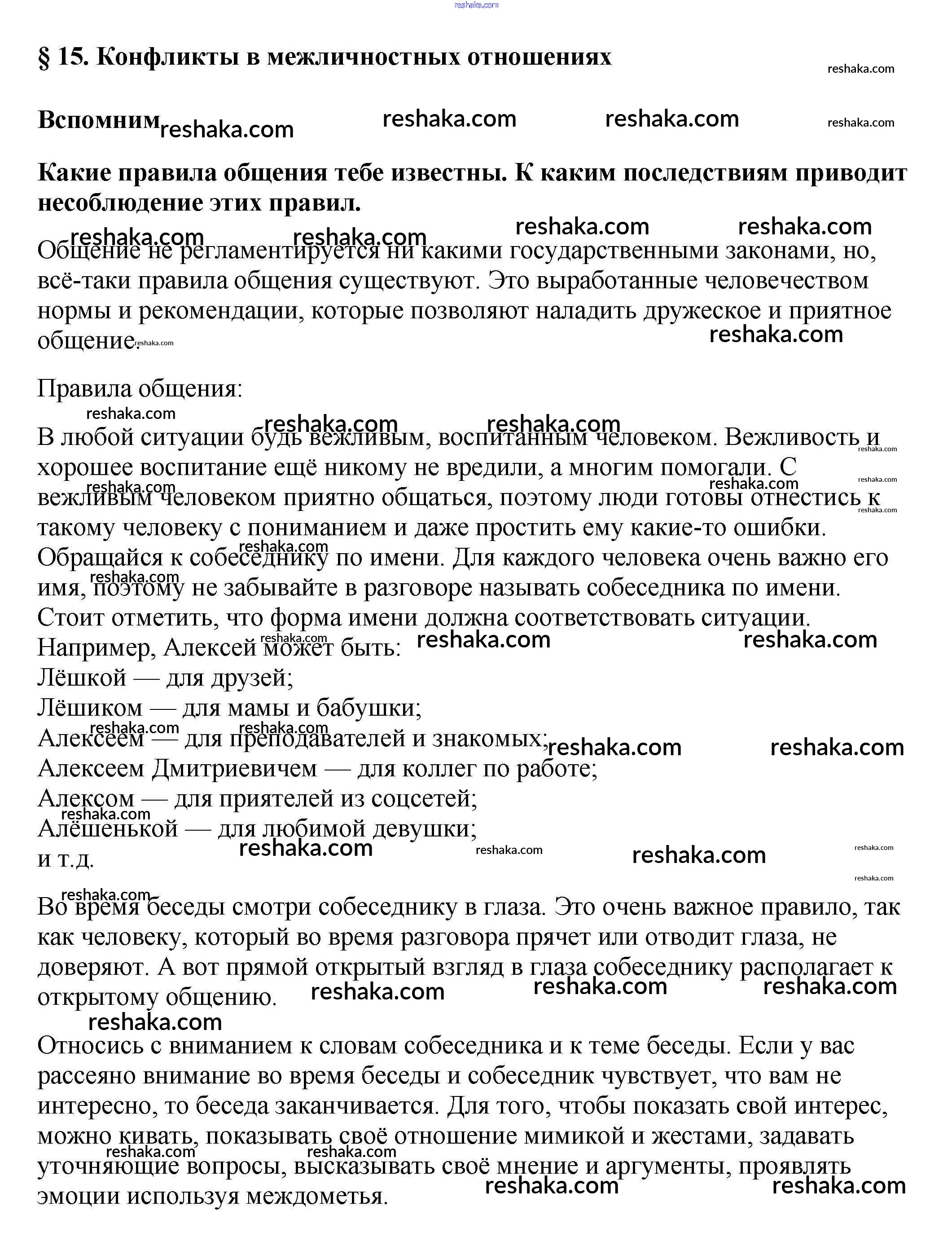 Представляем вам сборники по Обществознанию, с готовыми ответами к Учебнику Боголюбов школьной программы для учеников шестой класса. Это не просто гдз с ответом, а с подсказками, как верно решить Вспомним §15. Конфликты в межличностных отношениях 1. Проверяй домашку с умом и получай высший балл!