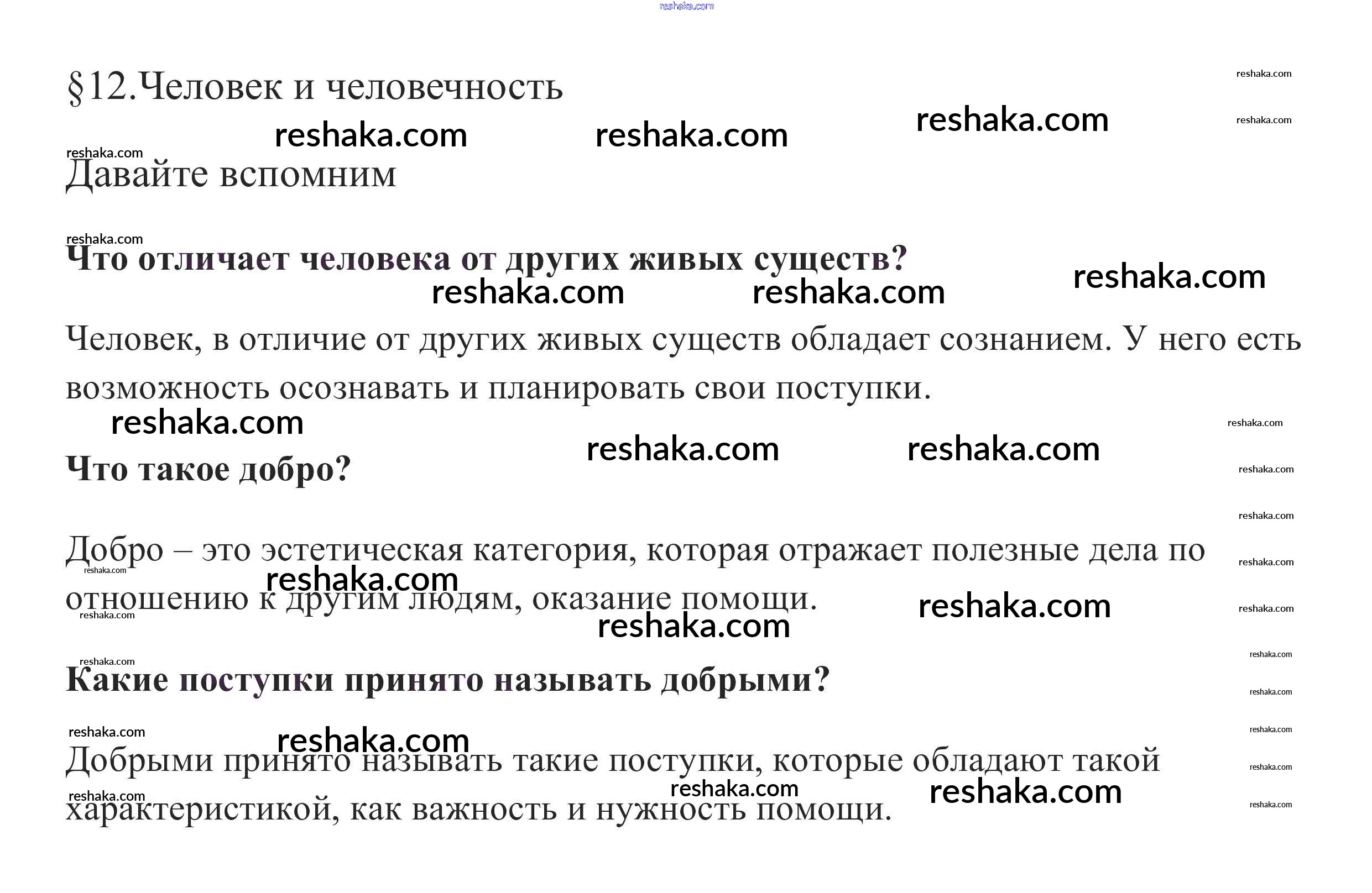 Представляем вам сборники по Обществознанию, с готовыми ответами к Учебнику Боголюбов школьной программы для учеников шестой класса. Это не просто гдз с ответом, а с подсказками, как верно решить Вспомним §12. Человек и человечность 1. Проверяй домашку с умом и получай высший балл!