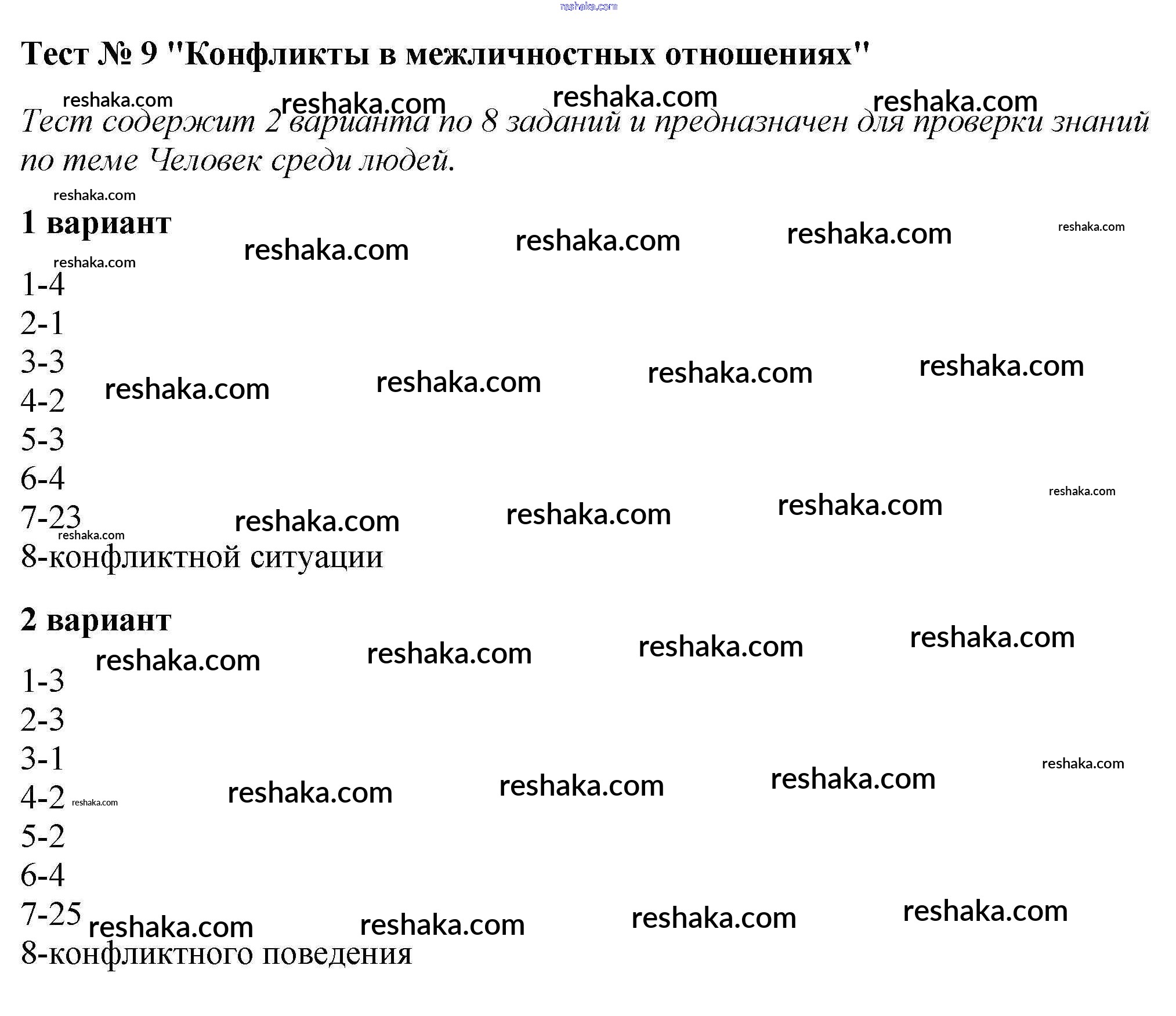 Решака - онлайн ответы Обществознание Коваль за 6 класс Тесты ФГОС 2016 - Тест №9. Конфликты в межличностных отношениях