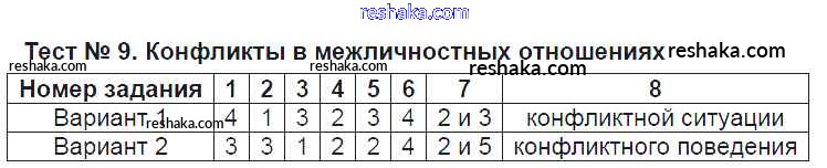 тест / тест №9. конфликты в межличностных отношениях
