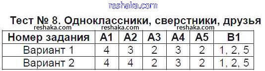 Решака - онлайн ответы Обществознание Поздеева за 6 класс Контрольно-измерительные материалы (КИМ) ФГОС 2017 - Тест №8. Одноклассники, сверстники, друзья