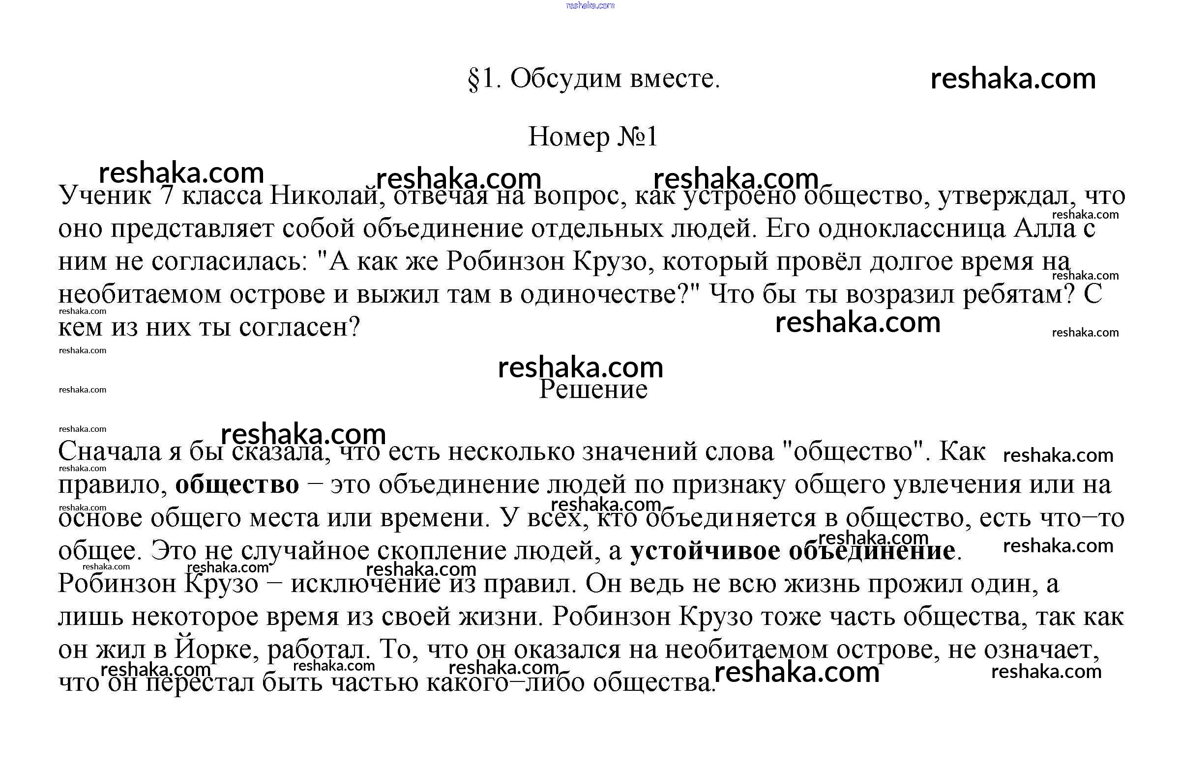 Решака - онлайн ответы Обществознание Боголюбов, Городецкая за 7 класс Учебник ФГОС 2015 - 1