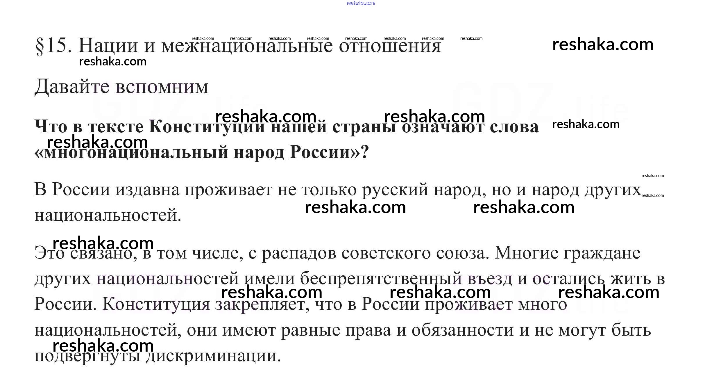 Представляем вам сборники по Обществознанию, с готовыми ответами к Учебнику Боголюбов школьной программы для учеников восьмой класса. Это не просто гдз с ответом, а с подсказками, как верно решить Вспомним §15. Нации и межнациональные отношения 1. Проверяй домашку с умом и получай высший балл!