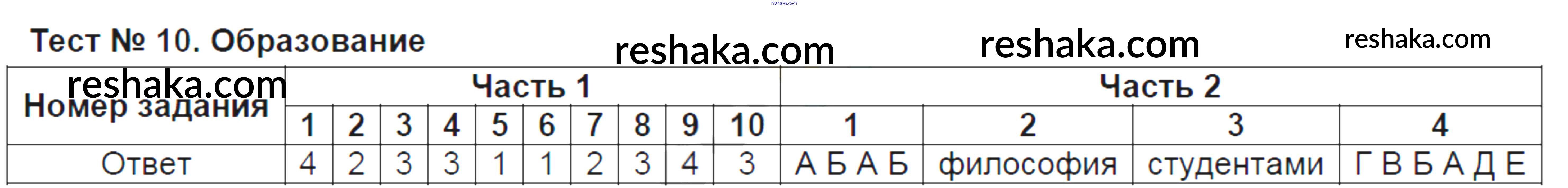 Решака - онлайн ответы Обществознание Краюшкина за 8 класс Тесты ФГОС 2017 - Тест №10. Образование