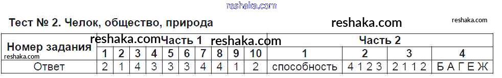 Решака - онлайн ответы Обществознание Краюшкина за 8 класс Тесты ФГОС 2017 - Тест №2. Челок, общество, природа