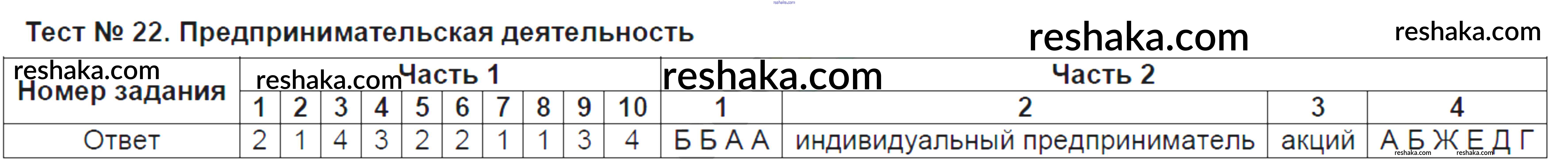 Решака - онлайн ответы Обществознание Краюшкина за 8 класс Тесты ФГОС 2017 - Тест №22. Предпринимательская деятельность