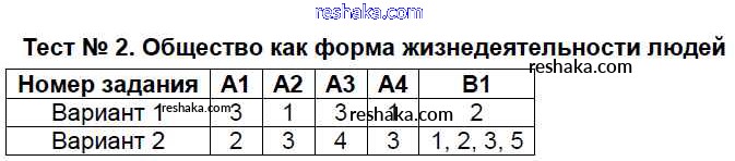 Решака - онлайн ответы Обществознание Поздеев за 8 класс Контрольно-измерительные материалы (КИМ) ФГОС 2017 - Тест №2. Общество как форма жизнедеятельности людей