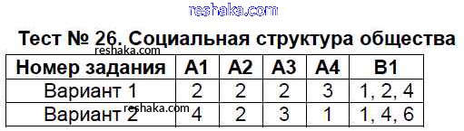 Решака - онлайн ответы Обществознание Поздеев за 8 класс Контрольно-измерительные материалы (КИМ) ФГОС 2017 - Тест №26. Социальная структура общества
