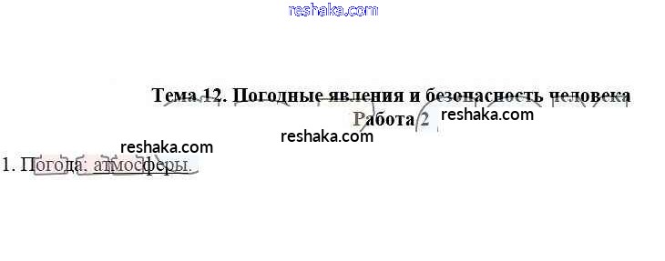 Представляем вам сборники по ОБЖ, с готовыми ответами к Рабочей тетради Демидов школьной программы для учеников пятый класса. Это не просто гдз с ответом, а с подсказками, как верно решить Работа 2 Тема 12. Погодные явления и безопасность человека 1. Проверяй домашку с умом и получай высший балл!