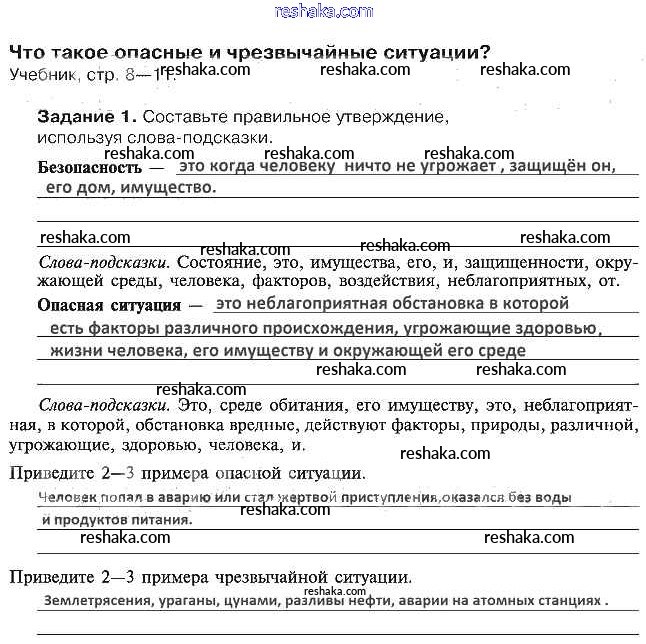 Представляем вам сборники по ОБЖ, с готовыми ответами к Рабочей тетради Драновская школьной программы для учеников пятый класса. Это не просто гдз с ответом, а с подсказками, как верно решить 1. Что такое опасные и чрезвычайные ситуации 1. Проверяй домашку с умом и получай высший балл!