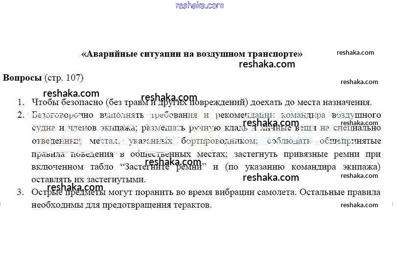 Решака - онлайн ответы ОБЖ Фролов, Шолох за 5 класс Учебник ФГОС 2015 - 107