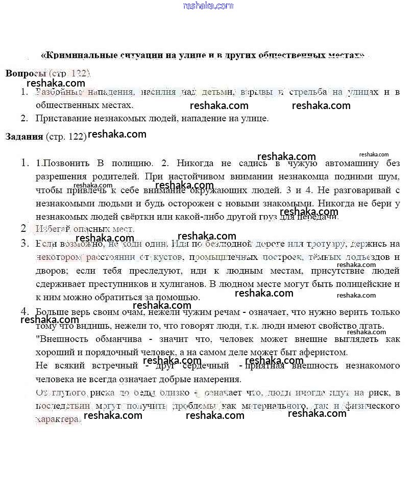 Решака - онлайн ответы ОБЖ Фролов, Шолох за 5 класс Учебник ФГОС 2015 - 122