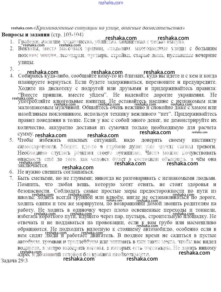 Решака - онлайн ответы ОБЖ Поляков, Кузнецов за 5 класс Учебник ФГОС 2015 - 103-104