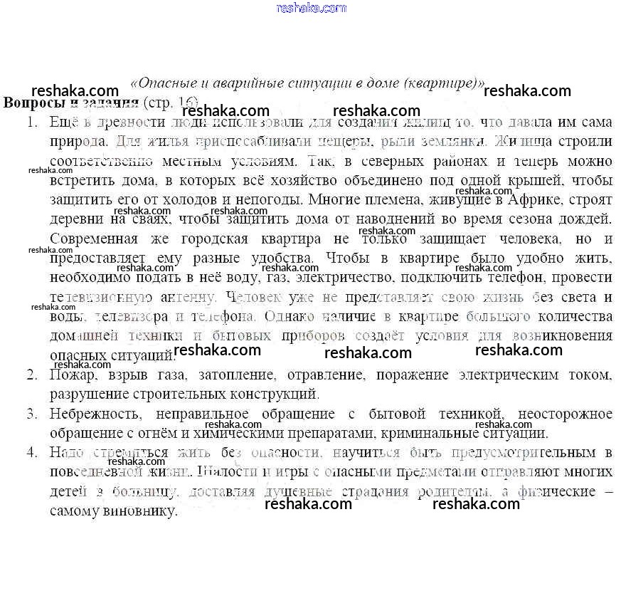 Решака - онлайн ответы ОБЖ Поляков, Кузнецов за 5 класс Учебник ФГОС 2015 - 16