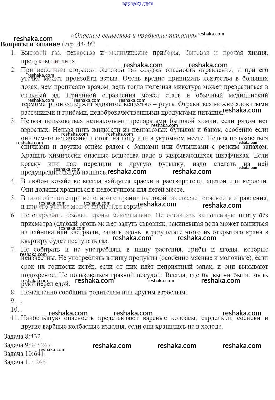 Решака - онлайн ответы ОБЖ Поляков, Кузнецов за 5 класс Учебник ФГОС 2015 - 44-46
